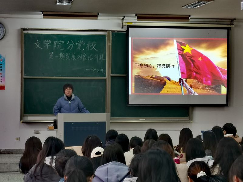 3月24日下午,日本无码 分党校第二期发展对象培训班第一讲在2号教学楼204教室举行。日本无码 退休教师刘建芳为培训班学员做了“不忘初心,跟党前行”主题讲座。