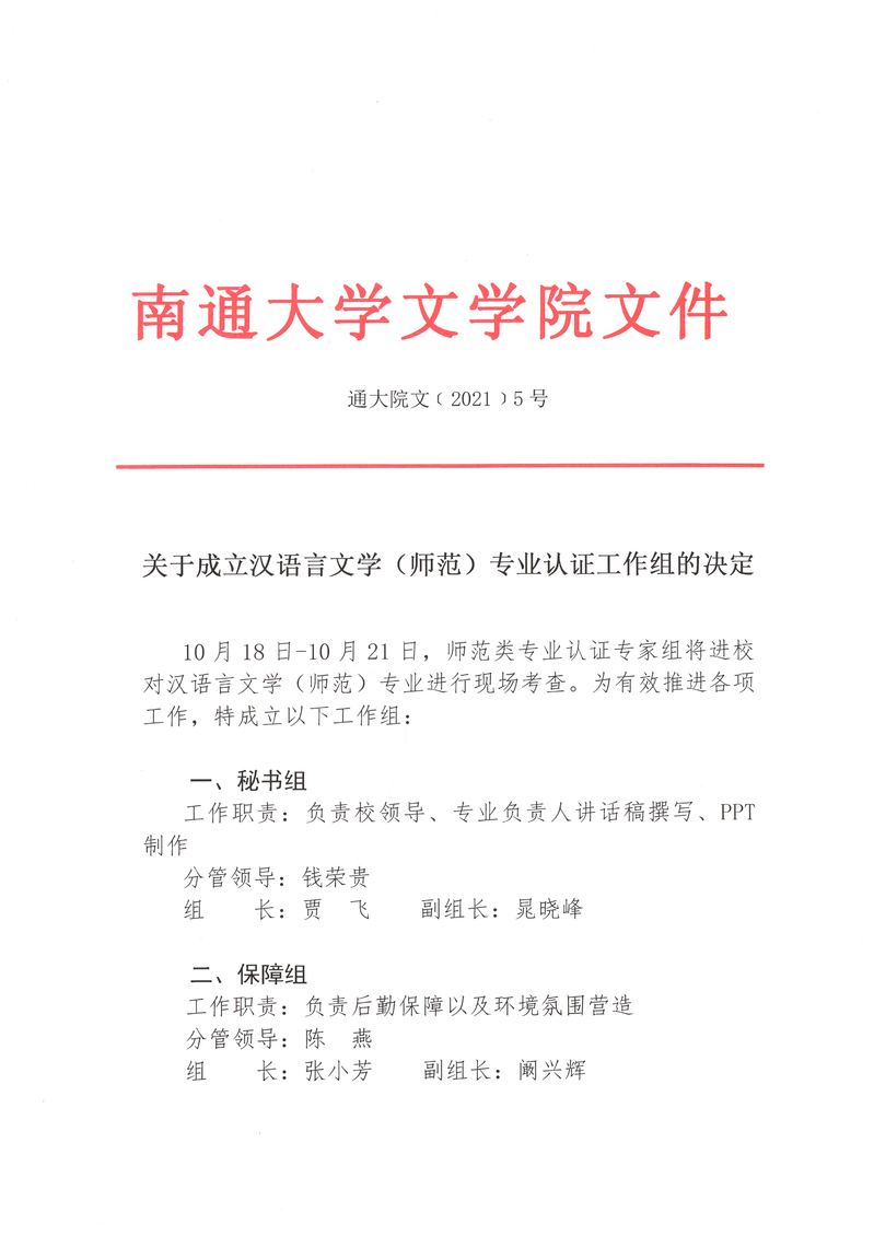 【通知】关于成立汉语言文学(师范)专业认证工作组的决定