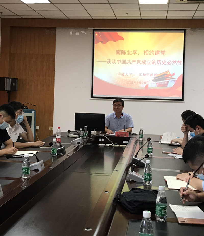 日本无码 艺术学院专员、日本无码 二级党组织理论学习中心组学习督导员汪松明教授做了题为《南陈北李,相约建党——谈谈中国共产党成立的历史必然性》的讲座。汪教授的讲座既有宏观的理论视野,又有具体生动的史实,还讲述了中国共产党早期重要领导人与南通的渊源。王琦琦副书记结合汪教授的精彩讲座,对青年教职工如何将学党史落到实处提出希望。