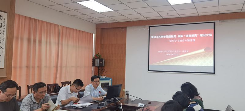 在组织生活会前,蒋国宏给支部全体党员上了题为《学习江苏百年辉煌党史,服务强富美高建设大局》的党课。他从历史和实践两个角度出发,深入浅出、形象生动地交流了党史学习的心得体会。他指出,历史是最好的教科书,党史是最好的精神粮食。首先,从历史角度看,江苏党史是党领导江苏人民进行新民主主义革命并取得伟大胜利的历史,是党领导人民进行社会主义革命和建设并取得伟大成就的历史,是党领导江苏人民进行改革开放并取得伟大成就的历史,是党领导江苏人民奋进新时代并实现伟大飞跃的历史,在中国共产党百年光辉历程占据特殊地位,担负特殊使命,发挥特殊作用。其次,从实践角度看,百年江苏党史给我们留下巨大的精神财富和重要的思想启示,让我们在党史学习过程中坚定信念,激发斗志,明确方向。回顾百年波澜壮阔的江苏党史,一代又一代共产党人为革命英勇献身、为建设殚精竭虑、为发展呕心沥血,孕育出“周恩来精神”“雨花英烈精神”“新四军铁军精神”“淮海战役精神”“渡江战役精神”“杨根思精神”“王杰精神”“四千四万精神”“三创三先精神”“华西精神”“张家港精神”“开山岛精神”等,我们要继续传承好、实践好、发展好党领导江苏人民创造的伟大精神,在以习近平同志为核心的党中央坚强领导下,在全省上下的不懈努力下,牢记“两个率先”的光荣使命,对照“强富美高”的目标定位,完成“两争一前”的使命要求。作为高校教师,我们要响应国家的号召,结合江苏的发展,按照学校的要求,立足当前,着眼长远,夯实基础,提升能力,服务社会,力求“学必期于用,用必适于地”,在自己的岗位上做好各项工作,为江苏高质量发展贡献力量,以优异成绩迎接建党100周年。(施仲贞)