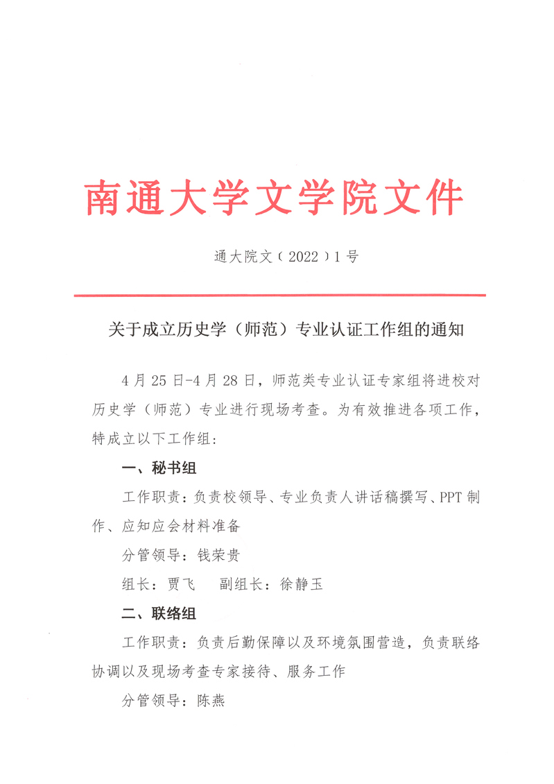 【通知】关于成立历史学(师范)专业认证工作组的通知