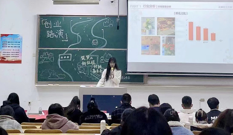 本次活动共有6个大学生自主创业团队参加,涵盖科技、文化、生活服务等领域。项目负责人从团队成员分工、项目创新性、产品市场竞争力等角度分别进行阐述。其中,“牧猿人”工作室从创业历史、工作室业务等方面介绍了团队开始西装租赁定制的创业之路;“唱吧俱乐部”旨在以打造全新娱乐模式为宗旨,满足大学生的生活需求;“青蓝阁”文创工作室则从三个阶段入手讲述自己创新创业发展战略;“花事坊”团队对形式多样的花卉产品与校园鲜花销售模式进行了展示;“云库”借助互联网独立自主研发数据集成处理平台,供消费者决策参考;“rich送生活服务工作室”专注提供生活服务,在日常琐事上为同学们排忧解难。
