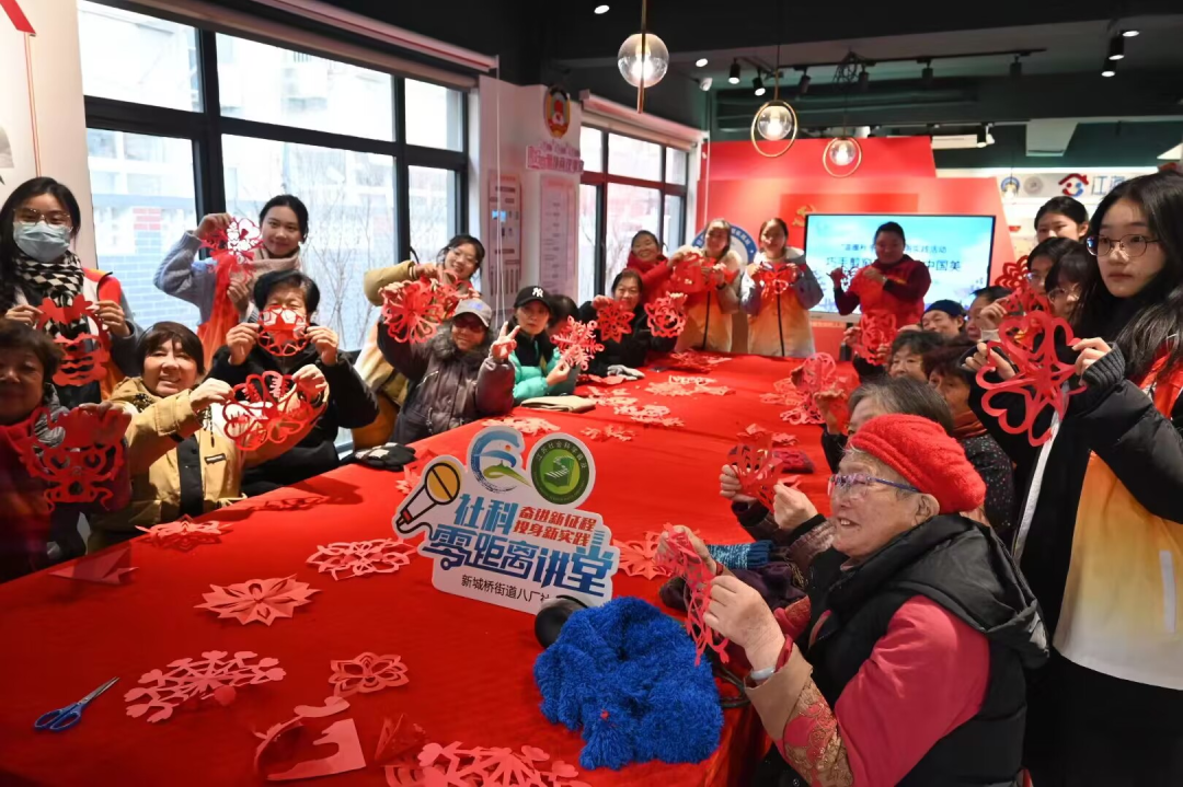 活动还为志愿者和老人们提供了跨代交流的平台。老人们在裁剪红纸的过程中与志愿者敞开心扉,回顾与窗花相关的点滴往事。志愿者们安静倾听这些陈年趣事,从老人口中了解到了他们生活的时代和更多的民风民俗,贴近了他们的美好岁月。