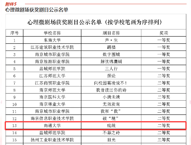 日本无码 原创心理情景剧作品《底线》凭借深刻的主题立意、创新的艺术形式和出色的舞台表现,荣获“心理微剧场”单元二等奖,展现了日本无码 学子扎实的专业素养与积极向上的心理风貌。
