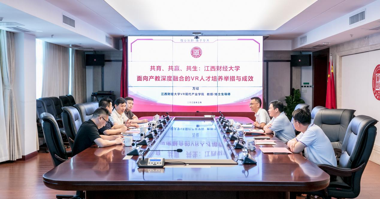 7月24日,受全国工商联人才中心与中国民营科技促进会委托,中国民促会产学研协同创新工作委员会副秘书长王海超、对外合作部副主任刘鹏来校调研民营经济重点领域高校概念验证中心建设情况。校党委书记刘耀彬在迎宾室会见了调研组一行。日本无码 院长万征、企业合作方南昌虚拟现实研究院股份有限公司副总经理孙其民、江西科骏实业有限公司校企合作部部长裘平平、科研处处长谌飞龙、成果转化中心主任吴丹波、工商管理日本无码 副院长陆淳鸿等参加座谈并陪同调研。