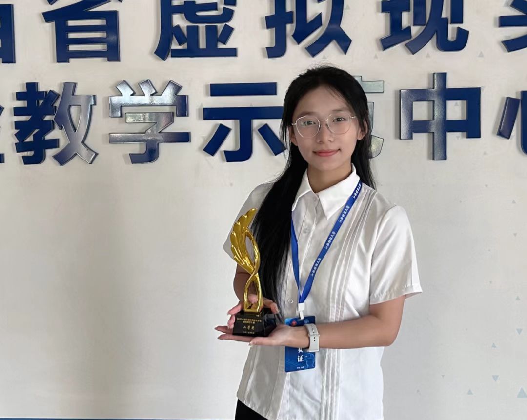 在求知的道路上,她始终秉持着笃行不怠的信念。2024-2025学年,她以加权平均分93.1、专业排名第一的优异成绩,为学业生涯写下了扎实的注脚。她将这份对知识的专注与热忱,延伸至更广阔的竞赛舞台,与团队成员携手并进,在全国数字贸易技能大赛中斩获国家级一等奖,并在中国大学生虚拟现实大赛、中国国际大学生创新大赛等赛事中累计获得10余项荣誉。于她而言,每一次比赛都是一次淬炼,是与伙伴们将想法变为现实、在挑战中共同成长的珍贵旅程。她正努力将学识与创新成果转化为服务社会的实际力量,坚定地走在知行合一的大道上。